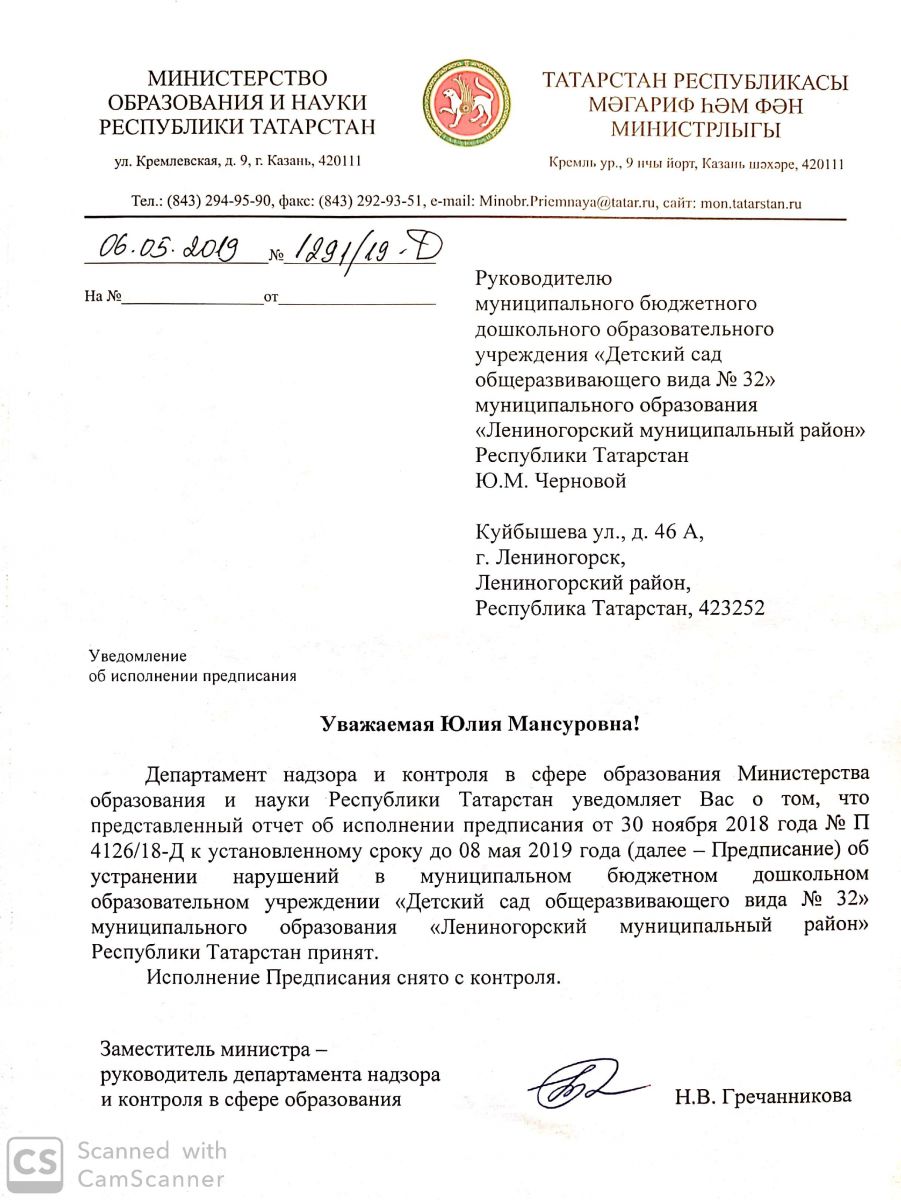 Предписание МО и Н РТ департамента надзора и контроля в сфере образования 2018