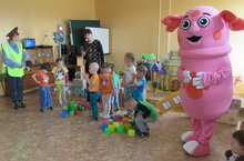Сегодня в коридорах детского сада было шумно и весело. Малыши первой младшей и вторых младших групп путешествовали по стране Правил дорожных движений вместе с Лунтиком в сопровождении Инспектора ДПС. Вместе с Лунтиком дети вспоминали и закрепляли правила дорожного движения, отгадывали загадки по дорожной азбуке, играли в разные игры, с удовольствием участвовали в эстафетах.