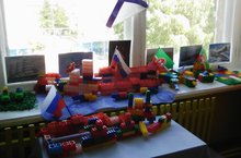 В рамках тематической недели "На страже мира" старшие группы сегодня организовали выставку военной техники, сделанной из лего-конструктора. В процессе этой увлекательной работы, которая заинтересовала не только мальчиков, но и девочек, ребята познакомились с боевыми машинами, танками, военными самолетами и вертолетами, подлодками, как современными, так и времен Великой Отечественной войны. Создание "экспонатов" сопровождался рассказом воспитателя о назначении каждой военной техники. Ребятам было очень интересно, а после знакомства с выставкой дети с удовольствием поиграли с экспонатами, устроив настоящее боевое сражение.