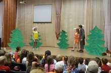 Именно так назывался детский спектакль, который сегодня порадовал наших дошколят своей современной и актуальной постановкой. Артисты приехали из г. Бугульмы и очень рассмешили зрителей похождением главного героя - Супер-Зайца, который по традиции оказался умнее Лисы и Волка. Дети с удовольствием посмотрели спектакль и поблагодарили артистов громкими апплодисментами.
