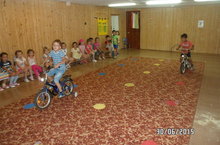 Участием в самых настоящих велосипедных гонках могут похвастаться старшие группы (воспитатель Галиева А.И.) Кто не любит кататься на велосипеде? Оказалось - все любят и неплохо справляются с "железным конём". Но эти весёлые соревнования были организованы для того, чтобы показать и рассказать детям, что управлять велосипедом очень ответственно, так как для него существует немало дорожных правил и знаков, регулирующих движение велосипедистов.