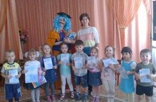 Сегодня в торжественной обстановке профессор Всезнамус поздравил детей средней группы (воспитатель Сибгатулина Г.М.) - победителей и участников всероссийского конкурса "Мудрый совенок", вручил лауреату конкурса - Волбенковой Кире грамоту и подарок, а участникам конкурса - сертификаты.