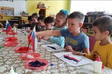 В подготовительной к школе группе "Сказка" стартовал культуроведческий проект "С любовью о России" с целью приобщения к истории и культуре родной страны - России. Куратором проекта является воспитатель по обучению татарскому языку Краснова Альбина Рафисовна. С детьми было проведено познавательное занятие с просмотром видео "Моя Родина- Россия", в котором дети закрепили знания о государственных символах, увидели необъятные просторы России с её природными богатствами. Творческим итогом встречи стала нетрадиционная аппликация с цветными нитками. Ребята выложили из них один из главных госудраственных символов - флаг Российской Федерации. -