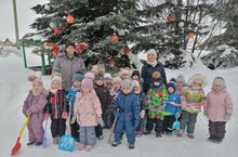 Дети средней группы "Фантазёры" вышли на уборку снега на территории детского сада, чтобы помочь нашему дворнику дяде Володе. С утра дети пришли в детский сад с лопатками и с нетерпением ждали, когда мы пойдём на прогулку. Вооружившись лопатами, мы отправились на территорию и принялись за работу. Было нелегко, но наши ребята так дружно продолжали расчищать снег, что некоторые не хотели останавливаться.