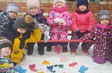 Зимой отмечают самый яркий, веселый и любимый праздник детей и взрослых Новый год. Все люди на нашей земле готовятся к встрече Нового года. Украшают жилище, улицу. Как сделать групповой участок нарядным и ярким придумали дети старшей группы "Сказка". В рамках недели "Зимняя лаборатория" в процессе исследовательской деятельности "Что такое лёд?" ребята узнали, что вода в замерзшем состоянии, да ещё и раскрашенная в разные цвета и залитая в формочки может стать оригинальным украшением. Вот такие цветные льдинки - украшения получились у них!
