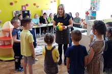 Сегодня в детском саду состоялся праздник для ребят средней группы "Любознайки" - "Посвящение в пешеходы", ведь скоро им предстоит пойти в школу и они станут одними из главных участников движения. В гости к ребятам пришли их друзья Фиксики, с которыми они закрепляли правила дорожного движения в разных интересных играх. Ребята "Любознайки" разыграли для Фиксиков познавательную сказку про Зайку, который попал под трамвай из-за нарушений правил безопасности на дороге. А доктор Айболит вместе с агитбригадой детского сада "Территория безопасности" рассказали всем о таких важных моментах, как знание и соблюдение при переходе сигналов светофора, знание дорожных знаков, ношение световозвращающих элементов на одежде в тёмное время суток, перевозка детей с помощью удерживающих средств. На празднике присутствовал начальник отделения профилактики ГБУ «БДД РТ» Рахманова Зульфия Мударисовна, которая поздравила ребят из группы "Любознайки" с важным событием в их жизни-посвящением в пешеходы. Ребятам вручили подарки и медали. С хорошим настроением все приняли участие в весёлом танцевальном флешмобе. -