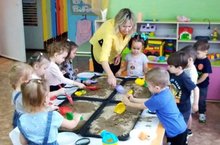 Во второй младшей группе "Звёздочки" прошло открытое занятие по развитию познавательной активности детей в процессе экспериментирования с песком. вся деятельность на занятии была направлена на расширение знаний детей о свойствах сухого и мокрого песка. Ребята опытным путём увидели, что из сухого, сыпучего песка куличики не получаются. Но стоит песок намочить, происходит чудо- куличики получаются объёмные, ровные, красивые. -