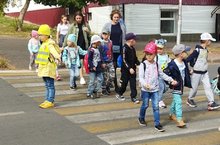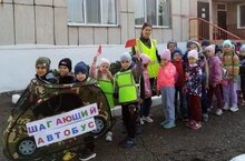 Воспитанники групп "Лучики" и "Сказка" провели профилактическое мероприятие «Шагающий автобус». Цель мероприятия - предупреждение детского дорожно-транспортного травматизма и отработка практических навыков безопасного поведения маленькими пешеходами. Воображаемый автобус с пассажирами отправился в пешую прогулку, в процеесе которой обращали внимание на правила поведения во дворе, безопасные места для игр. Вблизи перекрестка, расположенного неподалеку от дошкольного образовательного учреждения, ребята смотрели за движением транспорта, дорожными знаками, пешеходным и транспортным светофорами и их режимом работы. В ходе мероприятия дошкольники и их родители вручили пешеходам письма-обращения, памятки о соблюдении ПДД. -