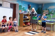 Дети группы "Сказка" пришли сегодня в кабинет ПДД, чтобы закрепить знания о безопасности поведения на улицах. В формате "Открытый микрофон" дети высказывали свою точку зрения на важность соблюдения ПДД, к каким последствиям могут привести шалости на улице. Матвей и Эмилия подготовили интересные сообщения для своих одногруппников об истории светофора, о назначении фликеров. Дети узнали, что первый светофор был "ручной" и двухцветный, а дорожные знаки светятся в темноте, потому что покрыты светоотражающей краской.Бүген "Әкият" төркеме балалары юл йөрү кабинетына юл йөрү кагыйдәләре буенча белемнәрен ныгыту өчен килделәр. "Ачык микрофон" форматында балалар юл хәрәкәте кагыйдәләрен үтәүнең мөһимлегенә, урамда шуклыкның нинди нәтиҗәләргә китерүенә үз фикерләрен әйттеләр. Матвей һәм Эмилия үзләренең төркемдәшләре өчен светофор тарихы, фликерлар билгеләү турында кызыклы хәбәрләр әзерләделәр. -