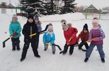 Хоккей – отличный способ организации двигательной активности детей на свежем воздухе! Эта спортивная игра не только укрепляет иммунитет и здоровье, но и учит общению, развивает скорость реакции, точность и глазомер, тренирует характер. Сегодня в детском саду прошёл матч по хоккею в валенках с шайбой «Выходи играть в хоккей!».Перед игрой участники выполнили ходьбу с заданиями, легкий бег, ОРУ и перестроения. Инструктор по физической культуре Салимова А.Р. учила детей правильно держать клюшки, правилам безопасной игры, командным действиям. Ребята упражнялись в ударах по шайбе с удобной стороны, в ведении шайбы и забивании ее в ворота. В дружеском матче встретились команда «Меткая шайба» и команда «Сильная клюшка». Игра была живой, быстрой и увлекательной. -