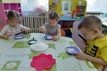 В рамках гостевого обмена опытом, педагог Тахауова Светлана Геннадьевна сегодня с детьми своей группы "Сказка" провела интегрированную образовательную деятельность "Следствие ведут знатоки: необычное в обычном", где предметом для исследования стала обычная пуговица. Дети средней группы узнали, что пуговицы не только необходимы человеку в одежде, но и могут быть опасными. А ещё с пуговицами можно научиться считать, экспериментировать, с помощью разных размеров пуговиц можно нарисовать целую картину, тренируя технику обведения предмета. Пуговицы на дорожке здоровья, которые сделали родители воспитанников, помогают сохранить здоровье и используются в целях профилактики плоскостопия. Пуговицы это ещё и весёлый шумовой музыкальный инструмент, когда ими заполнишь какую-нибудь коробочку. Дети узнали, что существует музей пуговиц, памятник пуговице. Так, в процессе разнообразных видов деятельности дети обычную пуговицу смогли необычно использовать. -