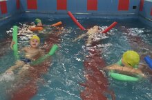 Ребята средней группы "Фантазёры" посещают кружок "Дельфинёнок" только 3 месяца. Но за этот короткий период у них уже есть замечательные результаты! Ребята научились плавать с помощью доски с погружением головы в воду. А также освоили упражнение "стрела" и научились держаться на воде на спине при помощи нудл, которое даёт дополнительное сопротивление и позволяет прокачать мышцы рук.
