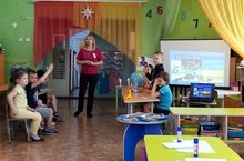 В подготовительной к школе группе "Звёздочки" прошла пресс-конференция по теме "Материки Земли", в которой как экспертами, так и журналистами выступили сами дети, и только модератором и пресс-секретарём был педагог- Таймухина Татьяна Александровна. Таким образом, дети смогли обощить свои знания о материках нашей планеты, об особенностях их климатических условий, разнообразии растительного и животного мира, особенностях жизнедеятельности людей. Для проведения такой формы занятия познавательного цикла необходима была серьёзная и тщательная подготовка. Эксперты, совместно с педагогом и родителями, готовили информацию и презентацию о выбранном материке. А журналистам также было предложено заранее подготовить интересующие их вопросы. Особенно актуальными в среде будущих первоклассников были такие вопросы, как: "Какие животные обитают на материке и чем они питаются?", "Какие крупные реки протекают по материку?", "Какие народы заселяют материк?", "Какие страны расположены на этом материке?" и т.д. Наших детей интересует всё!