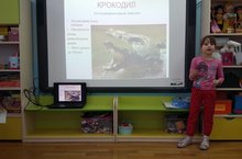 Сегодня Настя К. рассказала об удивительном мире животных Африки. Познавательная презентация, подготовленная вместе с мамой, и увлекательный рассказ вызвали множество вопросов у ребят. Отвечая на вопросы "почемучек", Настя дополнила свой рассказ фактами из жизни животных, их особенностей и повадках.