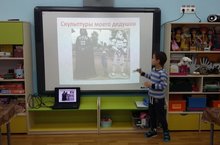 Презентацию "Скульптуры моего дедушки" представил Адель Х. С гордостью он рассказал о необычном хобби своего дедушки. Ребята узнали о том, что уже три года он создает скульптуры из шин и металлических каркасов, поражающих своими размерами и оригинальностью. На изготовление одной скульптуры уходит от 30 до 40 шин и полтора месяца упорного труда! Весит одна такая скульптура до 500 килограммов, а устанавливается она с помощью манипулятора. Необычное увлечение вызвало интерес и нашло отклик в сердцах земляков. Скульптуры дедушки Аделя установлены в парке отдыха им. Ю. Гагарина г. Стерлитамак. У ребят творчество вызвало восхищение, уважение к необычному увлечению и желание непременно посетить этот парк.