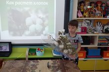 В рамках реализации проекта "Удивительное рядом" воспитанник группы "Алые паруса" Никита С. вместе с родителями подготовил интересную и очень познавательную презентацию. Воспитанники группы не тоько узнали, как и для чего выращивают хлопок, но и смогли прикоснутся к этому удивительному растению, привезенному из Узбекистана бабушкой Никиты. Благодарим всю дружную семью Никиты С. за участие в проекте!