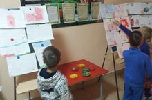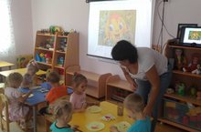 Во 2 младшей группе "Смешарики" в рамках недели хлеба прошли различные мероприятия: чтение тематических произведений, рассматривание картин, разгадывание загадок и др. С особым интересом малыши попробовали себя в роли художников, изображая в нетрадиционной технике при помощи пальцев всем известного сказочного персонажа Колобка. Воспитатель М.А.Лобанова творчески подошла к организации занятия, которое способствовало развитию наглядно-образного мышления, воображения, интереса к изобразительной деятельности. В конце занятия весёлые Колобки отправились на выставку