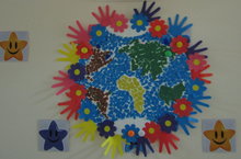 Ребятам очень понравилось изображать с помощью кусочков цветной бумаги океаны, моря и материки. Они окружили планету - наш общий дом, своими ладошками и посадили на ней цветы, чтобы она была всегда защищенной, прекрасной и мирной.