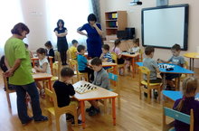 Шашки – это и наука, и спорт, и искусство в одной игре, доставляющая много радости и удовольствия! 10 января в нашем ДОУ прошел шашечный турнир среди воспитанников старшего дошкольного возраста. В турнире приняли участие 16 воспитанников. Преодолевая волнение, каждый участник стремился к победе. Члены жюри внимательно следили за правильностью шашечной борьбы, наблюдали за ходом сражений. Самые умелые вышли победителями. 3 место занял - Дима К., 2 место - Камиль И., 1 место - Камиль Г. Молодцы!