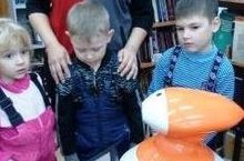 В детском саду с 13 по 17 ноября проводится "Книжкина неделя". Все группы активно включились вее организацию Воспитанники старшей группы "Алые паруса" совершили экскурсию в библиотеку им.Г. Тукая. Познакомились, как хранятся книги, как их выбирают читатели, как выдают их домой. Интересным для детей стало знакомство с работающим роботом, он прочитал ребятам свое любимое стихотворение , отвечал на вопросы детей о книгах. Экскурсовод- сотрудник библиотеки- подготовил для наших ребят беседу о творчестве Э.Успенского, выставку его книг.