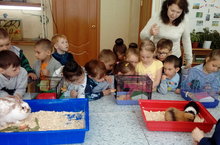 Экскурсии расширяют кругозор дошкольников. Общение с животными не только обогащает и расширяет знания ребят, но формирует у них любовь к братьям нашим меньшим.С этой целью сегодня воспитанники старшей группы "Солнышко" посетили живой уголок дома детского творчества. Ребятам не только разрешили погладить питомцев, но и научили как за ними ухаживать, и даже разрешили покормить животных и птиц живого уголка.