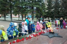 Сегодня старшая группа "Солнышко" совершила экскурсию к Вечному огню, для возложения цветов, в рамках проекта "Внуки и правнуки Великов Отечественной войны". Дети посетили Аллею Военной Славы, имели возможность рассмотреть военную технику, прикоснуться к истории Великой Отечественной войны.