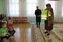 28 января для воспитанников 2 младших групп «Смешарики» и «Алые паруса» дети подготовительной к школе группы «Солнышко» показали сказку «Теремок». Герои сказки учили малышей правилам безопасного поведения на дороге.