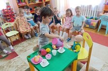 Икенче кечкенәләр "Салават күпере" төркеме балалары белән гаилә турында әңгәмә оештырылды, балаларда гаилә турында башлангыч күзаллаулар формалаштырылты. Ата-аналарына һәм туганнарына карата ярату һәм мәхәббәт хисләре тәрбияләнде. Нәниләр Маша белән Денисне чәй белән "сыйладылар", бишек җырлары җырлап, курчакларны йоклаттылар.