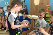 В группе «Алые паруса» продолжается реализация детско-родительского проекта «Удивительное рядом!», участниками которого стала семья Радмира. Ребята не только узнали об особенностях образа жизни ежей, но и смогли познакомиться с главным героем презентации домашним обитателем семьи - Южноафриканским ёжиком по кличке Ёжка. Дружелюбный, доверчивый, активный и любопытный зверёк вызвал восторг у детей! Ребята получили возможность рассмотреть ёжика, прикоснуться к нему и подержать его на руках. В завершении увлекательного рассказа мама Радмира провела для детей мастер-класс «Мой ёжик». Ребята слепили из пластилина и шишек ёжиков, а также поговорили о бережном отношении к природе.