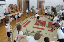 17.03.2021г. в рамках недели "Весна. Капель. Половодье", дети группы "Радуга" упражнялись в ходьбе колонной по одному, с поворотом в другую сторону по сигналу воспитателя, разучивали ходьбу по канату, удерживая равновесие и сохраняя хорошую осанку, в прыжках из обруча в обруч. Проявили интерес к народным играм, активно участвовали в них.