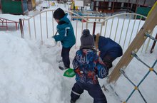 С удовольствием чистили снег на участке, помогали друг другу.