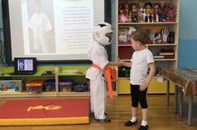 В рамках тематической недели «Неделя здоровья» воспитанник группы «Алые паруса» Семён Г. представил каратэ - вид спорта, которым он занимается уже второй год. Ребята узнали об истории возникновения каратэ, его традициях, рассмотрели форму, получили ответы на интересующие их вопросы. Интересно прошел мастер-класс! В роли сенсея выступил Семён. Под его руководством мальчики и девочки выполнили элементы упражнений каратэ. Поздравляем Семёна с успешной сдачей экзамена на оранжевый пояс! Желаем ему дальнейших успехов в спорте и достижений высоких результатов!