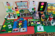 В рамках "Недели безопасности" воспитанники группы "Алые паруса" представили свои работы: макеты улиц с дорожными знаками, автомобилями, детскими площадками, пешеходами и машинами; постройку из ЛЕГО, лэпбук, книгу из фетра, рисунки, поделки в нетрадиционной технике "пластилинография", презентации. Ребята рассказали как правильно переходить дорогу по пешеходному и подземному переходу, о работе регулировщика, о том, что на улице можно играть в специально отведенных местах - детских площадках, уточняли как можно безопасно пройти к нашему детскому саду. Они поделились дидактическими и подвижными играми, логическими и творческими заданиями по безопасности дорожного движения!