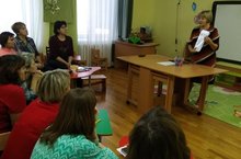 27 ноября 2019 года воспитатель по обучению татарскому языку М.Т. Мугинова провеля для русскоязычных педагогов мастер-класс, на котором представила как легко и просто закреплять знания детей по татарскому языку с помощью перфокарт. Минзиля Тауфиковна своей энергией и любовью к языку заряжает не только воспитанников ДОУ, но и всех педагогов.