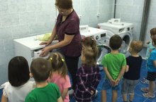 В рамках реализации проекта «Удивительное рядом», ребята из группы «Алые паруса», посетили прачечную детского сада. Малыши узнали о профессии оператора по стирке белья, рассмотрели помещение прачечной, оборудование и электрические приборы, а также узнали о правилах личной и пожарной безопасности. Благодарим Татьяну Валентиновну за содержательный рассказ и интересную беседу!