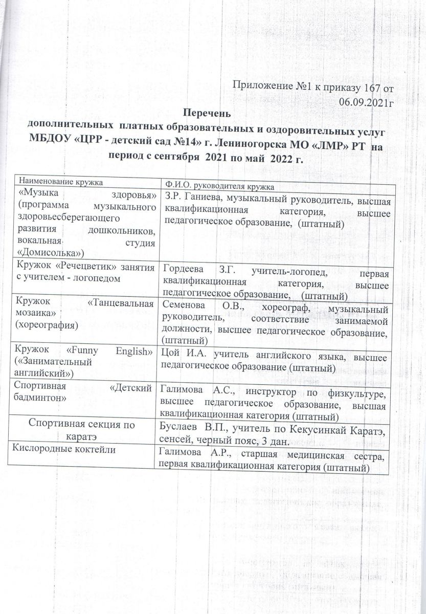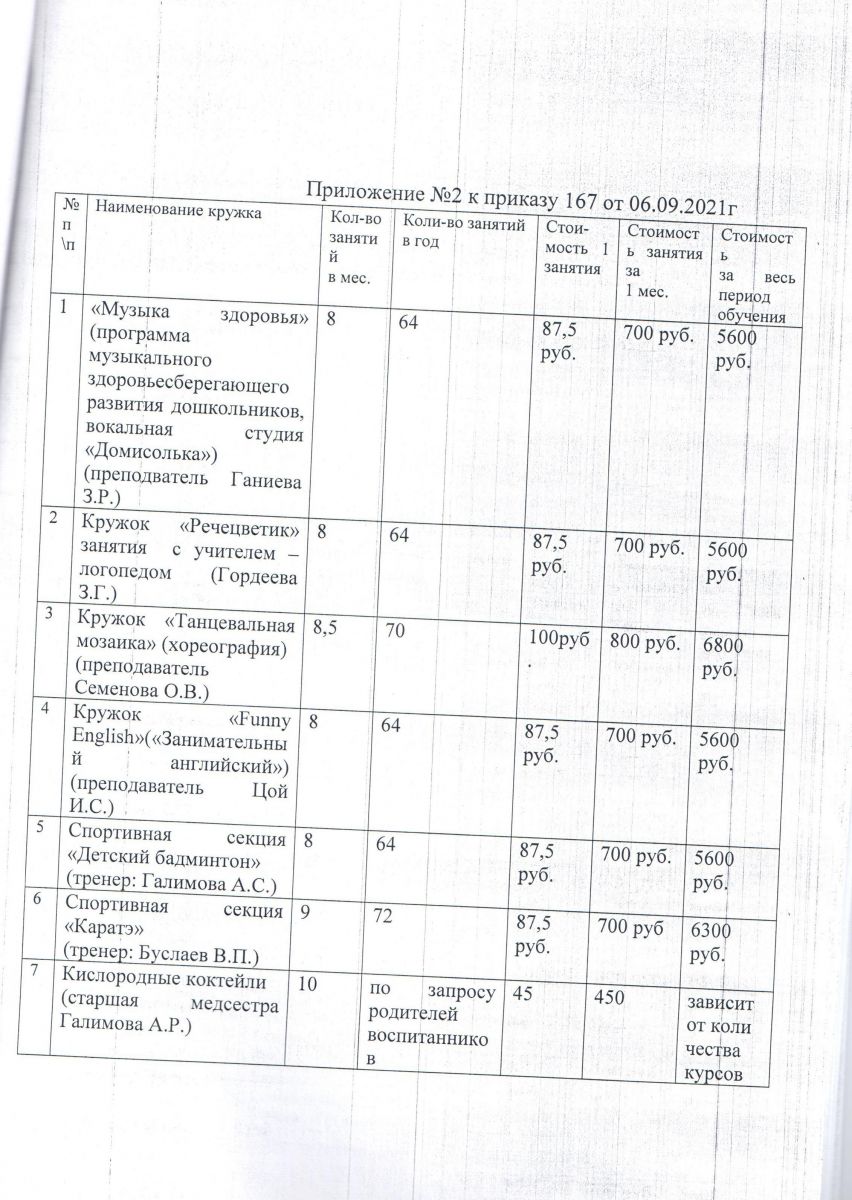 Приложение к приказу. Стоимость платных образовательных услуг jpg