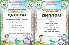 Воспитанники нашего сада Нигматуллин Тагир и Адиляполучили дипломы победителя во Всероссийском творческом конкурсе Республиканского этапа “Путешествие в страну Г.Тукая”, которая проходила в городе Набережные Челны. А кураторы- воспитатели Гарипова С.Т и Миндиярова Г.Р. получили от комитета благодарственные письма. Поздравляем наших победителей и желаем дальнейших побед!