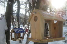 Сегодня старшая группа нашего сада вышла на экскурсию по городу. они прогулялись по аллее, любуясь заснеженными деревьями. Развесили и наполнили кормушки, сделанные своими руками.