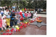 Вечный огонь – это памятник павшим в Великой Отечественной Войне воинам. Он горит и днем и ночью, и в лютый мороз, и в летнюю жару. Огонь никогда не гаснет, как не гаснет память о наших погибших солдатах. Героев Великой Отечественной войны много, но имена многих тысяч солдат, совершивших подвиги и отдавших жизнь за Родину, остались, к сожалению, неизвестными. К Вечному огню люди приносят цветы. В преддверии Дня Победы,в ясный солнечный день 8 мая мы с ребятами старшей и подготовительной групп по традиции возложили цветы к памятнику «Неизвестному солдату». Почтили память солдат, отдавших жизнь за свободу и независимость нашей Родины. Церемонию возложения цветов сопроводил минутой молчания в память всех погибших в 1941—1945 годах. Минута молчания – знак почтения всем людям, отдавшим свои жизни за то, чтобы сегодня у нас над головой было мирное небо.
