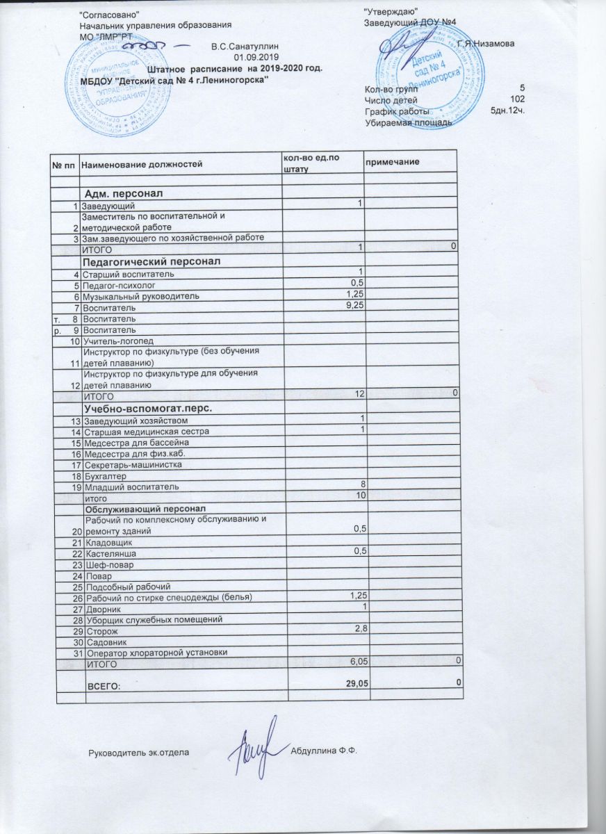 штатное расписание