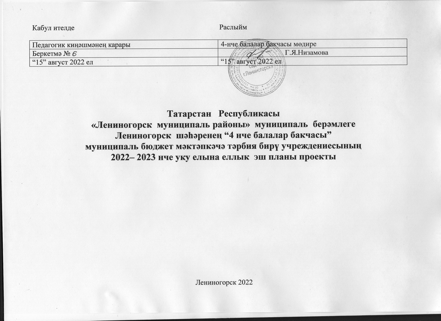Годовой план на 2022-2023 учебный год/ 2022-2023 нче уку елына уку- тәрбия планы