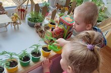 Так, во 2 младшей группе № 1 уже начали оформлять огород, посадили в землю семена разных культур и ежедневно осуществляют уход за растениями, поливают их. В ходе наблюдений и постоянного привлечения к уходу у детей формируются представления о правильных способах взаимодействия с растениями, воспитывается бережное отношение к природе.