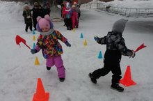 В средних, старших и подготовительных группах прошли спортивные соревнования "Зима для сильных, ловких, смелых!". Воспитанники состязались в силе, ловкости, быстроте, меткости. Кроме того повторили правила безопасности при катании на горке, на льду.