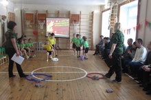 В гости на праздник пришла и Баба Яга, которая очень горевала, что ее внук Леший-Лёша, который скоро пойдёт в армию, ничего не умеет. Дети вызвались помочь ему и научить всему. Старшая группа № 1 и старшая группа № 2 соревновались между собой в различных конкурсах, эстафетах. Были привлечены на помощь и папы, и дедушки. А наши мамы оказались сегодня самыми меткими!