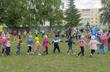 В честь Дня защиты детей в детском саду прошли развлечения во всех возрастных группах. На празднике детей встречали персонажи известных мультфильмов, с которыми дети пели, танцевали, играли и веселились.