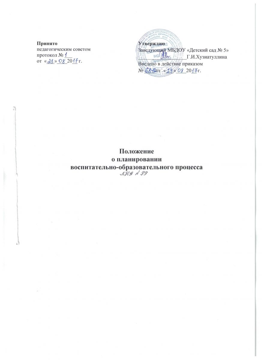 Положение о планировании воспитательно-образовательного процесса (ЛНА № 99)