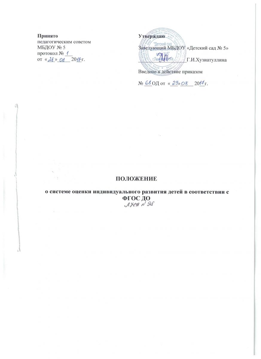 Положение о системе оценки индивидуального развития детей в соответствии с ФГОС ДО (ЛНА № 98)