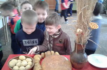 Что дают нам колоски.Сегодня воспитанники старшей-подготовительной группы посетили музей ДДТ, где их вниманию была предложена тематическая экскурсия "Хлеб - всему голова!" Ребята рассмотрели экспонаты музея, слепили из теста свои любимые хлебобулочные изделия, посмотрели мультфильм и даже спели песню "Каравай". Самое главное, наши воспитанники поняли, что хлеб нужно беречь!