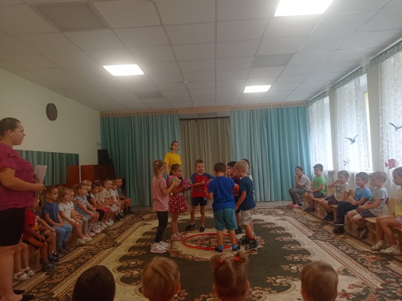 1 августа в нашем детском саду прошло праздничное мероприятие, под названием «Лето красное!». Все возрастные группы детского сада расположились в музыкальном зале и с нетерпением ждали начало праздника. Лето подарило ребятам веселые игры, забавы, танцы. На лицах детей сверкала улыбка, для них это было настоящее веселье и удовольствие. Праздник прошел весело и радостно, на эмоциональном подъеме, под задорную музыку. Погода тоже решила сделать сюрприз ребятам, и подарила солнечный, хороший день.