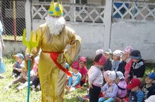 Дети вместе с Нептуном отгадывали загадки, принимали участие в веселых эстафетах, побеждали злую Кикимору.